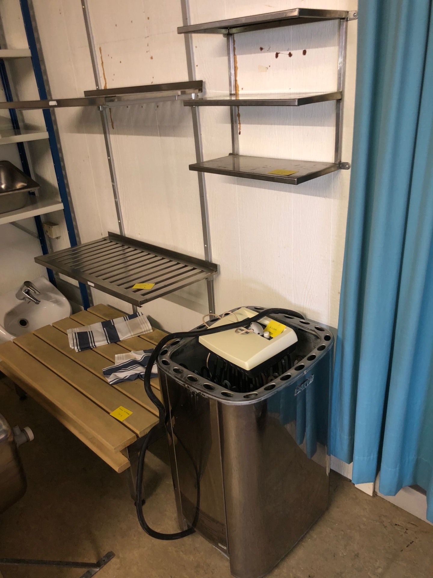 Kiuas ja rosterihyllyjä